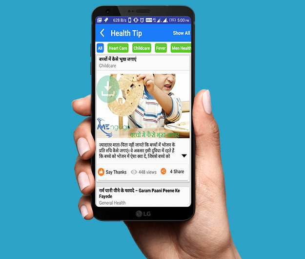 Regular health tips can keep your patients engaged via knowledge sharing. Also, you can add your own blogs in form of text, image, video, audio.